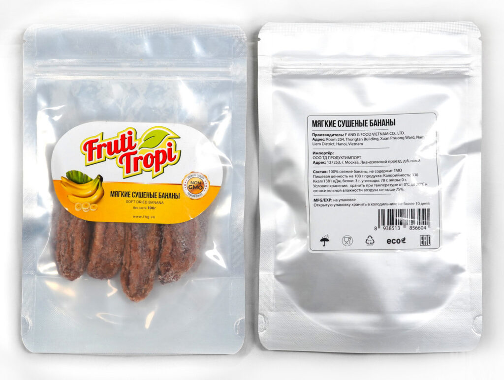 | Mô tả sản phẩm | – Chuối sấy dẻo không đường, có vị ngọt tự nhiên và rất bổ dưỡng. Nó đơn giản là chuối sấy không có chất phụ gia hay chất bảo quản nào. – Chúng tôi lựa chọn từ nguồn chuối tươi chất lượng hàng đầu tại Việt Nam để đảm bảo sản phẩm cho khách hàng là tốt nhất, màu sắc tự nhiên và hương vị thơm ngon cho thành phẩm cuối cùng của chuối sấy dẻo. Đó chính là Chuối sấy dẻo thương hiệu Fruit Tropi |