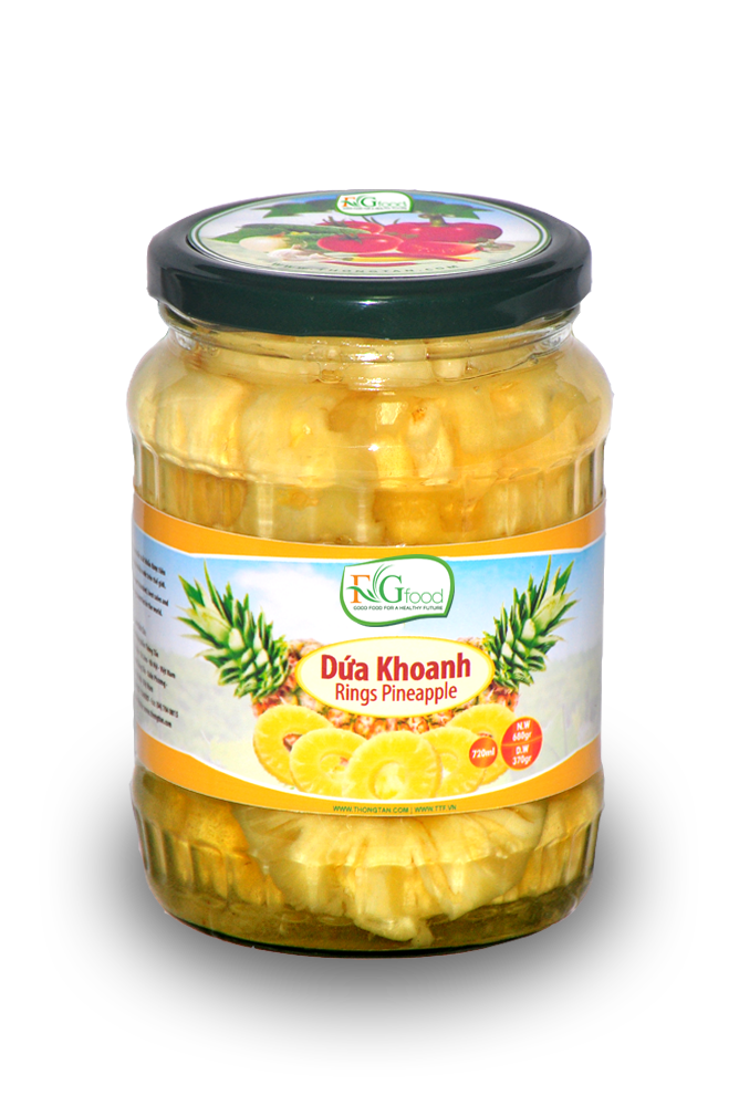 + Dạng dứa: Dứa khoanh (các dạng cắt khác: Dứa miếng, khoanh, vuông, rẻ quạt, pizza, nghiền…)