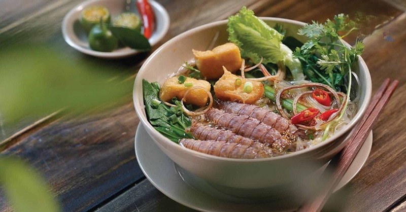 Bún Bề Bề: Hương vị biển trong một tô bún nóng hổi, kết hợp với chả mực, tôm, đậu, rau sống và nước dùng đậm đà.